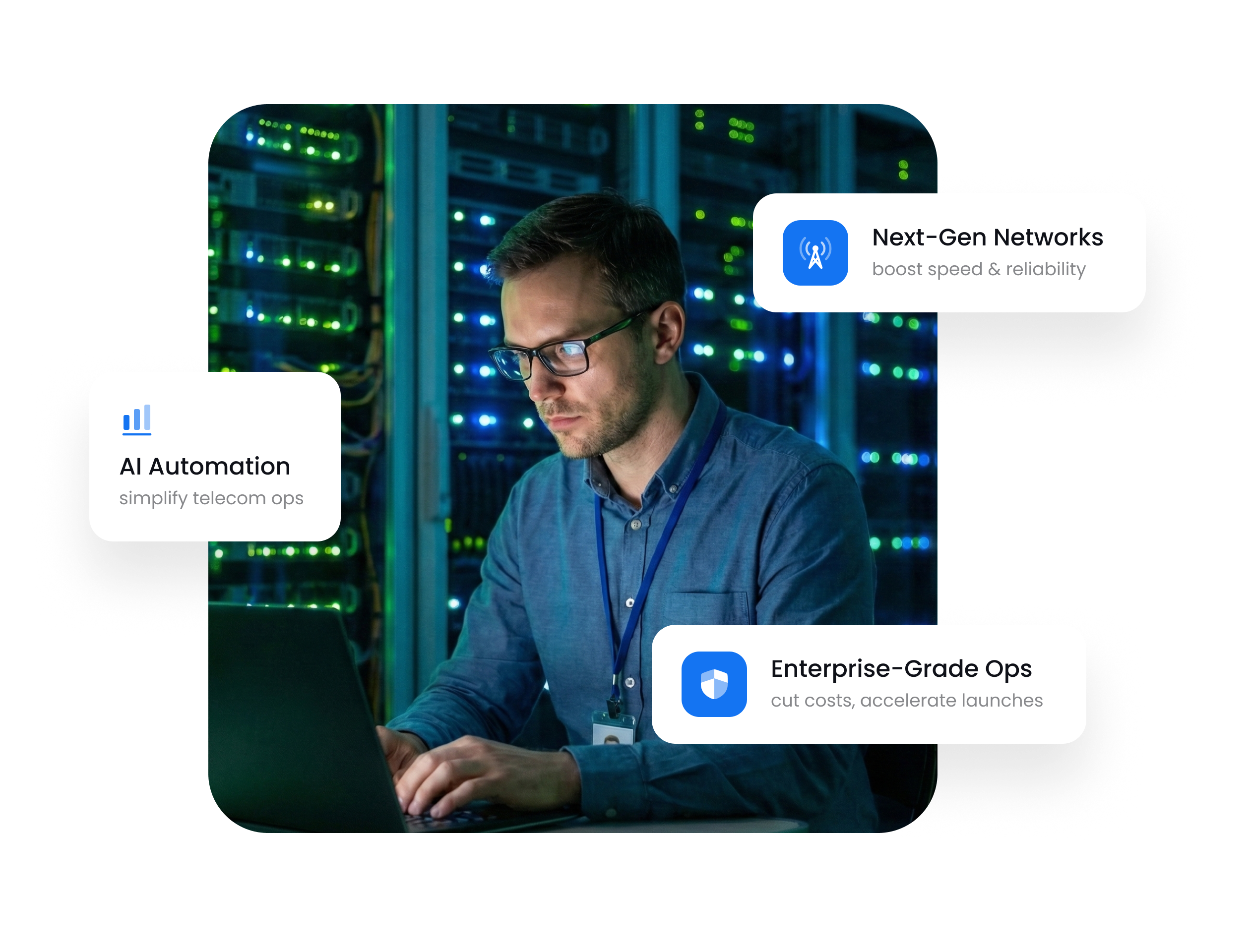 Control → Automate → Orchestrate → Scale. Streamline operations from network management to customer service.